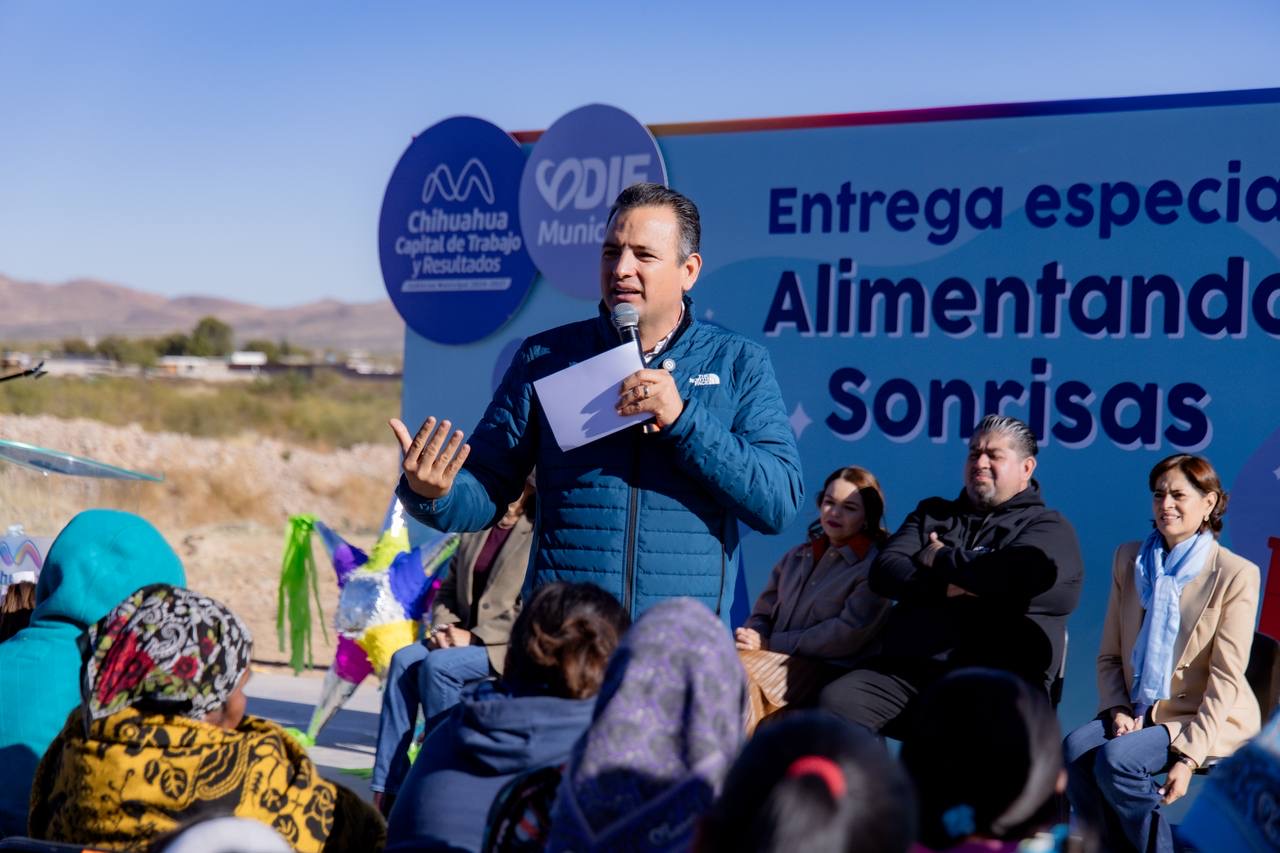 H. Ciudad de Chihuahua, Chih., a 25 de noviembre de 2025.- El alcalde Marco Bonilla, en coordinación con Grupo Multimedios, entregaron 200 despensas con 18 artículos cada una a familias de la colonia Ladrilleras Norte, mismas que fueron resultado de la colecta realizada durante el evento Viva la Radio.